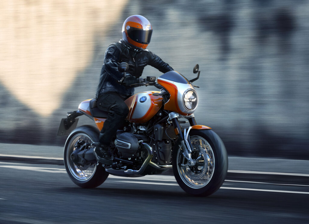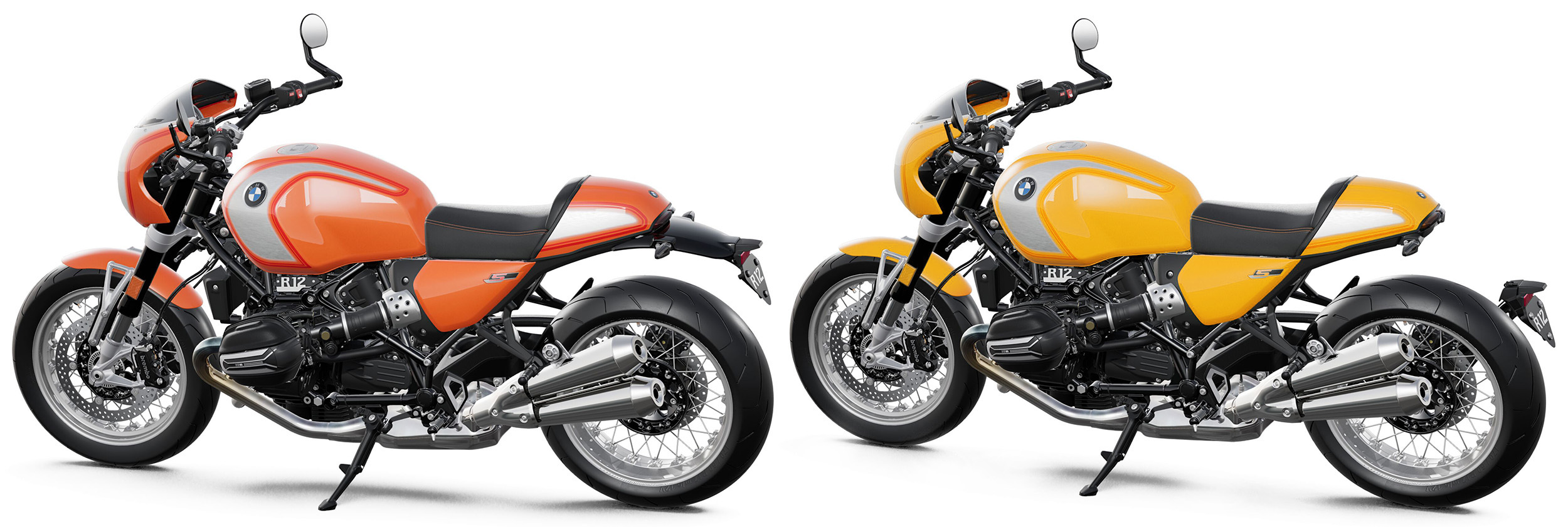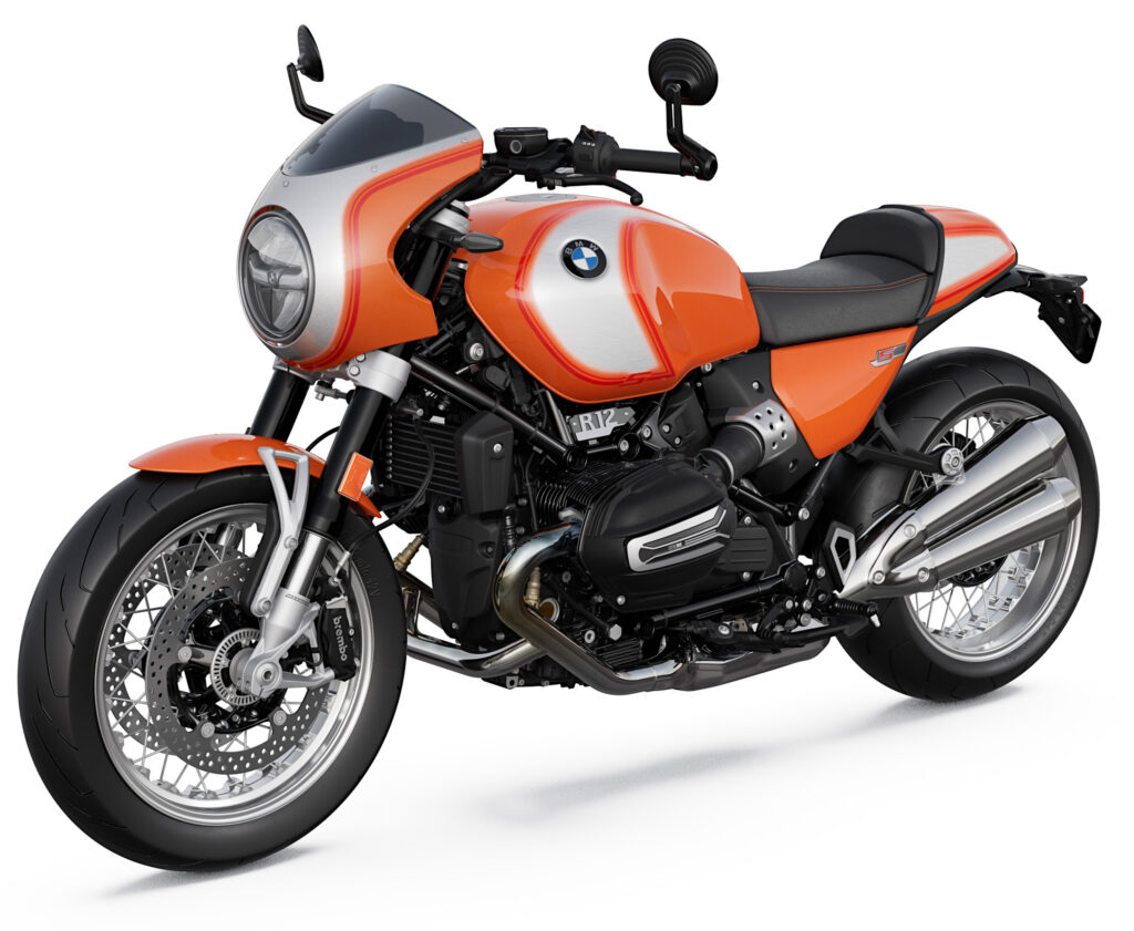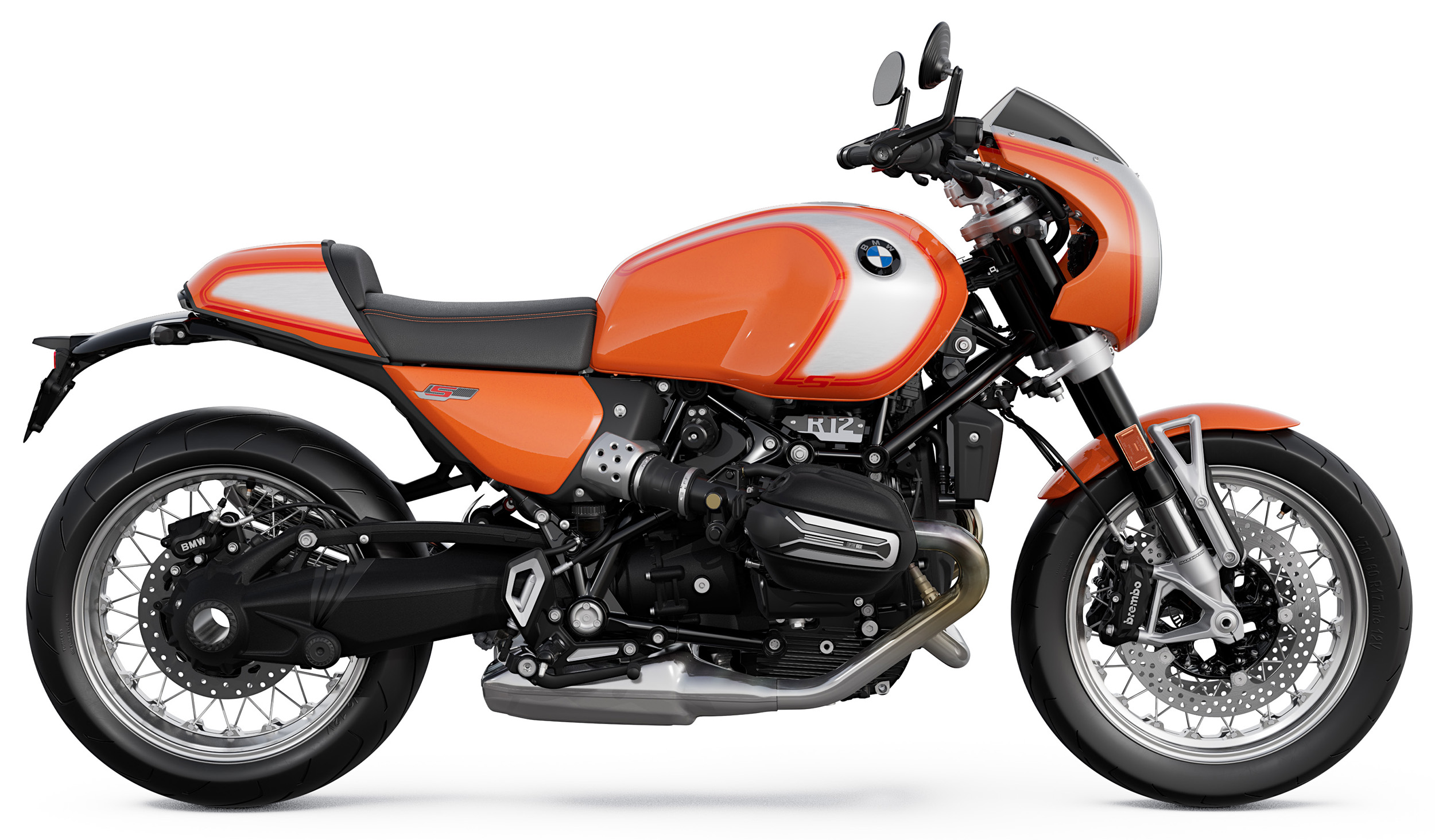 2025 års nyhet BMW R 12 S kostar 238 500 kronor i standardutförande, vilket inkluderar trådekrade fälgar.En av 1970-talets fetaste hojar var BMW R 90 S, som genom den tyska tillverkaren nu återuppstår med annan modellbeteckning, dagens teknik och retrodesign.Färgen kallar BMW Lavaorange metallic. Toppkåpan är styrmonterad.BMW uppger att förlagan för den nya modellen är den här avbildade R 90 S från 1973.Dåförtiden 67 hästkrafter och 215 kilo. Nu ytterligare 63 procent effekt och 5 ytterligare kilon. Traditionell framgaffel istället för BMW Telelever.Här utan och med tillverkarens egen lösning att flytta bakre stänkskärm, bakljus och registreringsskylt.