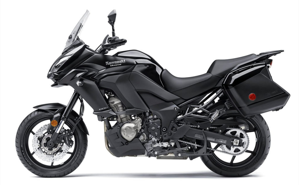 Här med den profil som gällde mellan årsmodell 2015–2018 och med Kawasakis egna färgmatchande packväskor.