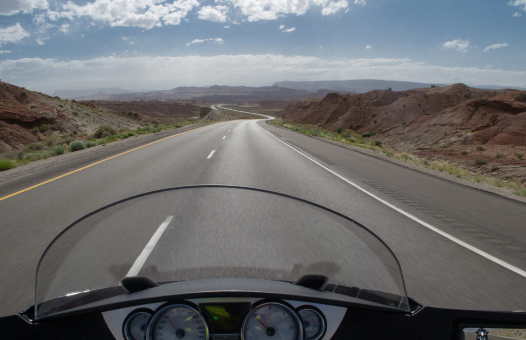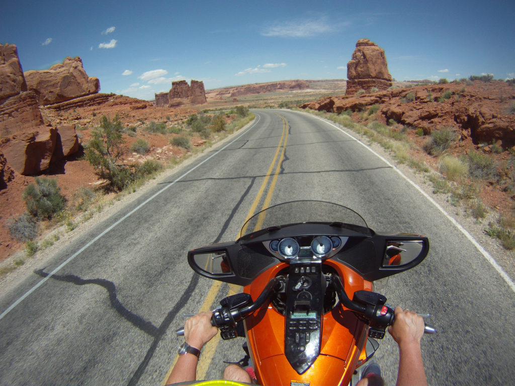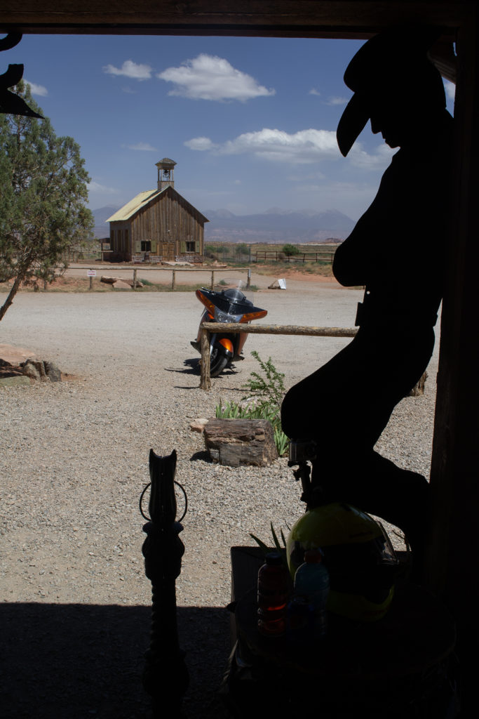 Andra dagen ska lära oss ett par nya läxor, vilket vi ännu är glatt okunniga om när vi fortsätter längs Interstate 70 västerut. På kartan ser de tjugonio svenska milen till Gateway via Grand junction ut som tre mycket avkopplande timmar. Och till att börja med är det verkligen avkopplande. Victory Vision har fyra högtalare, en av de mest bekväma motorcykelsadlar jag någonsin har upplevt och en vindruta som i sitt högsta läge gör att jag kan dricka Dr Pepper och vissla till Nickelback. Efter en timme genom Roan-platåns fullständigt sterila landskap har varken jag eller Simon sett skymten av en bensinmack. Värmen har en kvalitet som jag aldrig har upplevt förut, det känns som när man lyfter på en motorhuv eller öppnar en ugn. Jag börjar bli trött och yr och min Gatoradeflaska är tom. Så kommer en avfart. ”Millers Canyon” meddelar den enda skylten. Inget alls om bränsle, men däremot en pil mot samhället Emery. Hellre bensinstopp där än längs Interstate 70, resonerar vi nog i ömsesidig tysthet. Efter en stund längs den lokala landsvägen 912 som följer Muddy Creek når vi så samhället Emery. Det är på pricken likt en sådan där livlös bosättning där antihjältar i amerikanska filmer dyker upp och rättar till en orättvisa. Vid en korsning där man monterat ner vad som troligen var samhällets enda rödljus finns en obemannad mack och med tankarna fulla med amerikansk 95-oktanig bensin styr vill tillbaks mot Interstate 70.