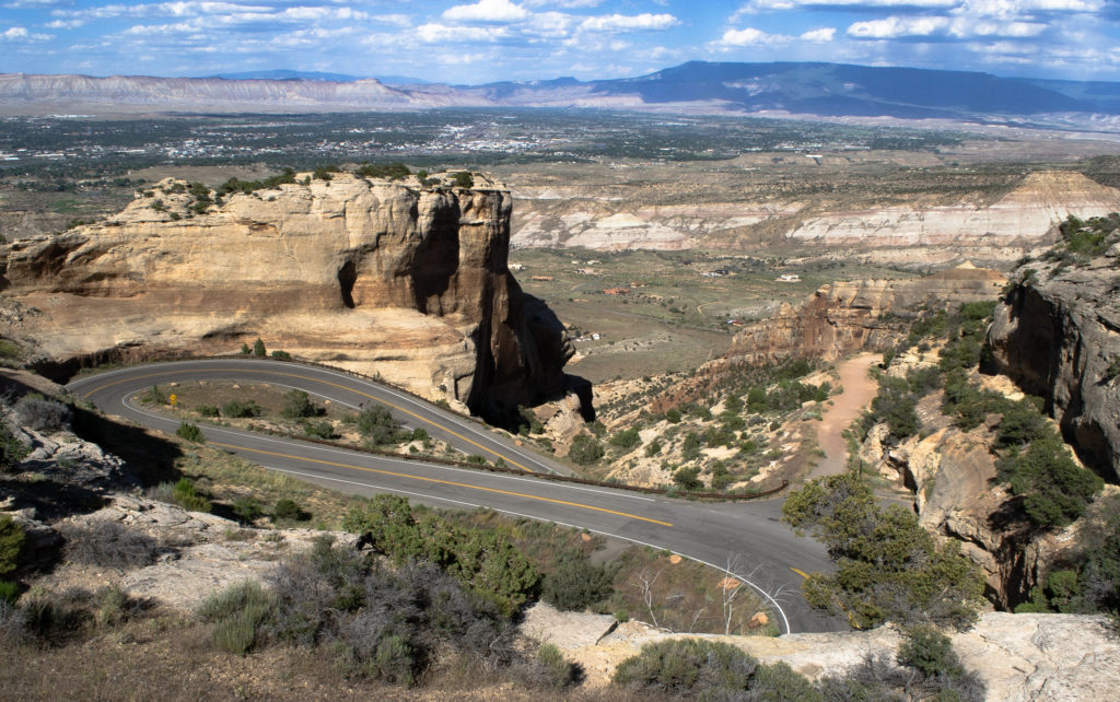 Vi kommer till slut fram till Grand Junction och är där av ett skäl: Rim Rock Drive. Den trettiofyra kilometer långa vägen byggdes längs klippkanten genom Colorado National Monument under 1930-talet och rankas jämte Going-to-the-Sun-Road i Montana och Pacific Coast Highway i Kalifornien som en av de mest spektakulära i USA. Infarten är belägen en mil nordväst om Grand Junction där vi betalar fem dollar var till en vakt i khakifärgad uniform och Stetsonhatt. Rim Rock Drive gör oss inte besvikna. Asfalten är finkornig som marsipan på en prinsesstårta och från de jämt dragna kurvorna är utsikten som verkliga bilder ur mina gamla Lucky Luke-magasin.