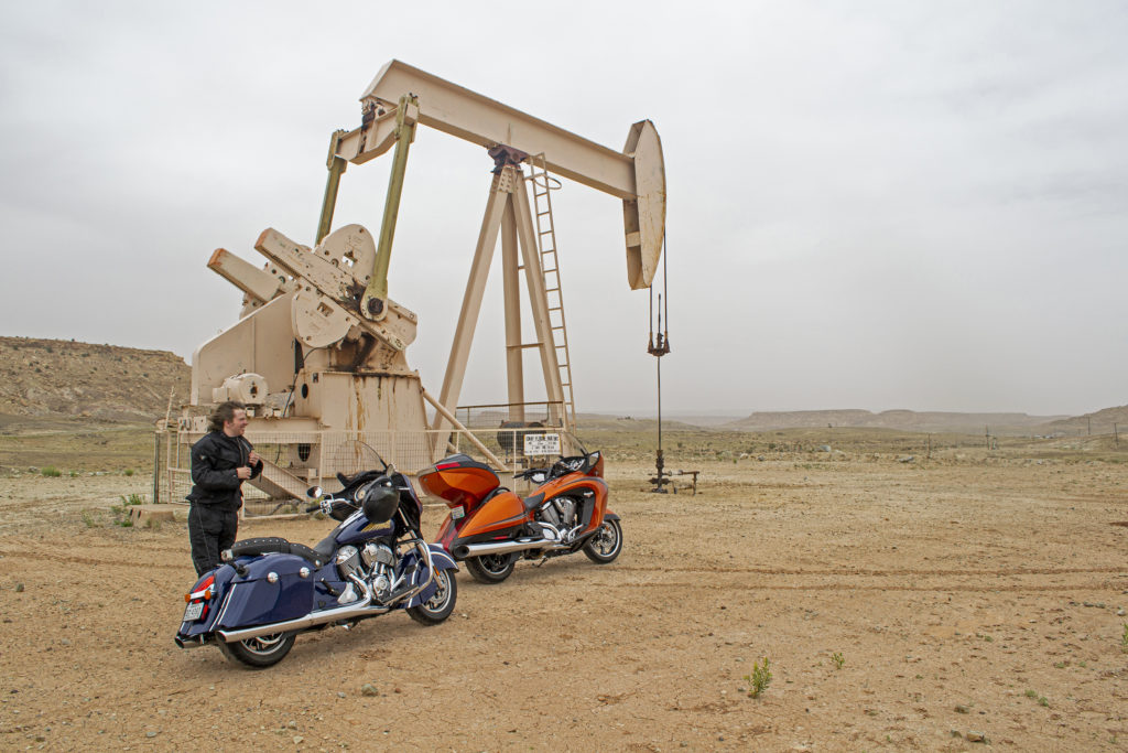 På hans namnskylt står det blott Birdman och han ber oss följa med ut på parkeringen. Genom de generöst tilltagna lokalerna hos Grand Prix Motorsports strax söder om Denver passerar vi en svängd trappa till övervåningen och en pilformad skylt med ordet Ammo handtextat förkunnar att Warhorse Firearms of The Rockies håller till på övervåningen. I den 35-gradiga skuggan på parkeringen har Birdmans kollegor Joe och Tony rulllat fram en Victory Vision och en Indian Chieftain. De två amerikanska motorcyklarna är noga utvalda för vår tio dagar långa resa från Denver till Grand Canyon. Nästan fyrahundra mil längs en rutt som ser ut som ett stort liggande M på Southwest-kartan från Hallwag.