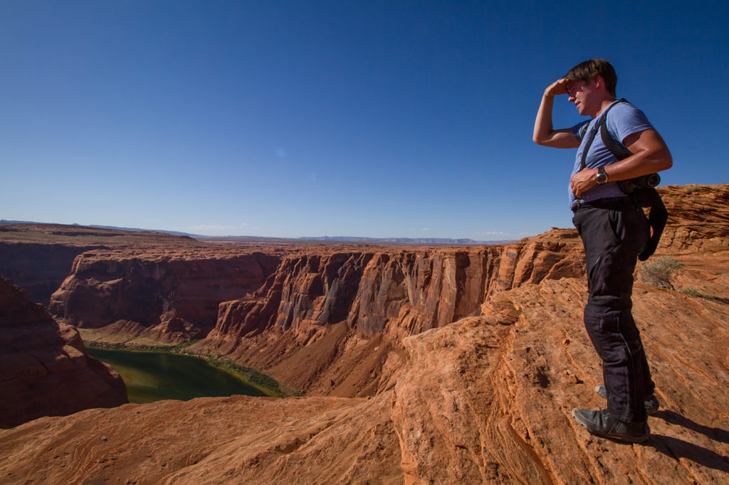 En kväll när vi kommer tillbaks från Grand Canyon ser vi hur en cowboy tränar rodeo i skenet från dygnets allra sista solstrålar. Vi stannar till och ser en kort stund på när han hanterar sin lasso från hästryggen innan det blir helt mörkt. Nästa morgon har Jeff, som arbetar som resguide i trakten och som Simon träffade på den lokala Chevron-bensinmacken, lagt en handritad karta på Simons Indian. Själv var jag tvungen att hinna med ett plan och köra rakaste vägen tillbaks till Denver, men Simon hade mer tid och berättade att kartan från Jeff ledde till resans höjdpunkt. Men det är en annan historia.