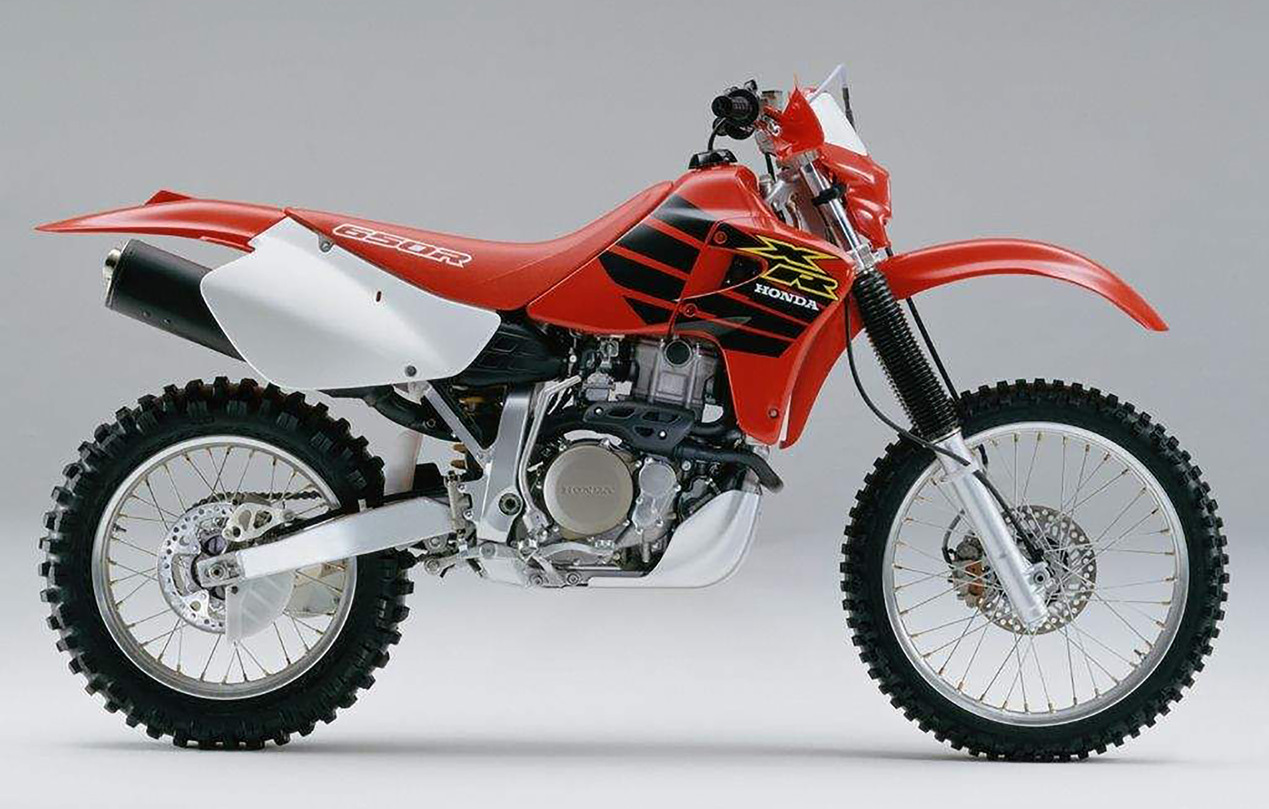 Hondas råbarkade grushoj debuterade som årsmodell 2000 och blev snabbt en svensk storsäljare. Med en fulltankad vikt på 144 kilo och nära 50 hk på bakhjulet är den ett prisvärt alternativ till Enduro 690 R. En uppenbar nackdel med Hondan är att den saknar elstart, men att kickstarta motorn är faktiskt inte så svårt och de få elstart-kit som finns kostar och väger åtskillilgt. Tidiga exemplar drabbades ibland av kopplingshaveri orsakade av en dåligt fungerande bussning. Kan vara idé att beställa och montera en bussning med ny förbättrad specifikation: artikelnummer 22116-MBN-671.