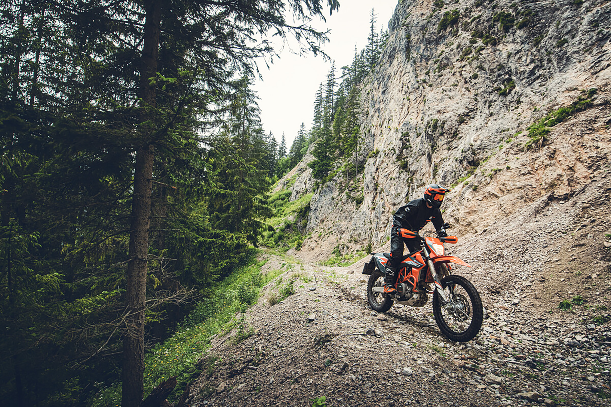 En kompromiss mellan enduro och landsväg blev en omåttligt populär grushoj. Är du av samma tuffa virke? Våra svenska grusvägar har en alldeles speciell dragningskraft på motorcyklister och det är lätt att förstå varför. Det finförgrenade nätverket av grusvägar i alla hörn av vårt land gör att man enkelt kan komma mycket nära naturen på ett sätt som inte är möjligt med bil. En av de allra bästa motorcyklarna att göra detta med är tveklöst KTM 690 Enduro R. Från början fanns modellen i både ett E- och R-utförandel, där R var den med lite mer terränganpassad specifikation. Sedan modellåret 2012 finns enbart R-versionen och det är den som avses i den här texten. Det ska sägas direkt: det här är inte en bekväm motorcykel. Den är till och med ganska obekväm. Sadeln är smal och hård och motorns vibrationer känns tydligt i både händer, fötter och bak.