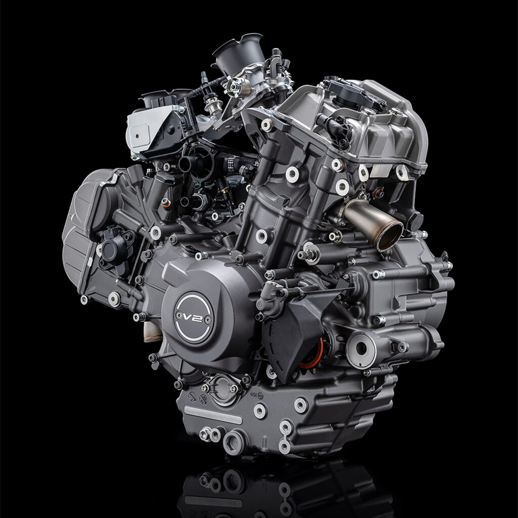 Ducati lanserar en helt ny motor som kommer driva en rad nya modeller framöver. Det rör sig om en tvåcylindrig vinkelmotor med vätskekylning och en cylindervolym på 890 cm³. Mer siffror är 120 hästkrafter vid 10 750 varv och 93 Newtonmeter vid 8 250 varv. Händelsevis siffror som ligger mycket nära drivkällan i nya Yamaha R9 och som möjligen kommer visa sig vara den nya standarden för sportiga landsvägsmotorcyklar med realistiska prislappar. Ducati framhåller att vikten är den lägsta någonsin bland tvåcylindriga motorer som det italienska märket har tillverkat: 54,4 kilo. Kontroll av ventiler vid 3 000 mil och oljebyte vid 1 500 mil ska enligt Ducati räcka för att inte ge föraren onödigt många gråa hårstrån. 115 hästkrafter, ett tyngre svänghjul och mer effektiv generator har den version av motorn som enligt Ducati är anpassad för touring och tuffare förhållanden; kan man tänka sig en konkurrent till BMW F 900 GS (105 hästkrafter) och KTM 890 Adventure (105 hästkrafter)?