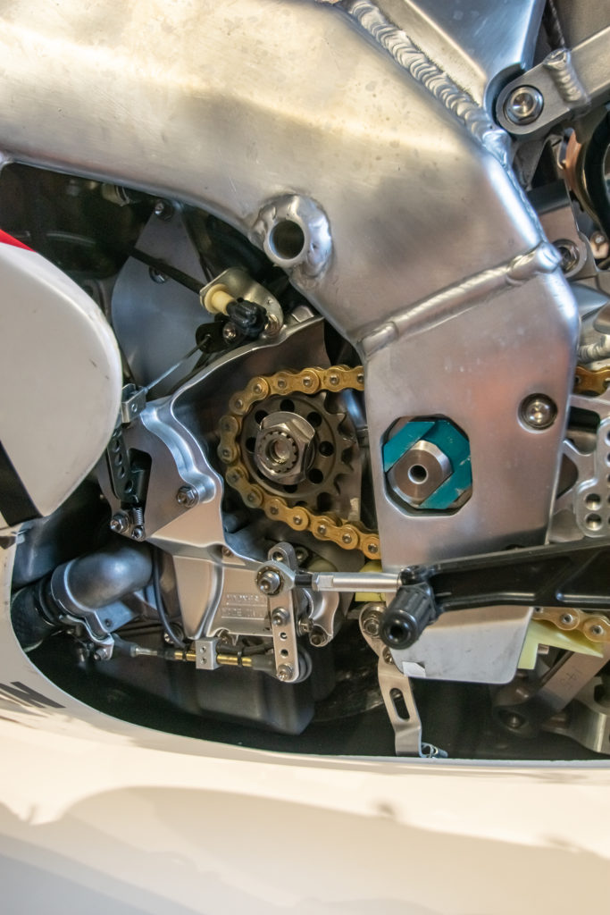 Mandy Kainz är chef för YART och visar mig runt i de omfattande lokalerna, vars utställningslokal där bilderna här är tagna, blott utgör en mindre del av helheten. I ett stort intilliggande utrymme färdigställer man många av de nyckelfärdiga tävlingsmotorcyklar som man säljer till både privatpersoner och tävlingsteam. Det är YZF-R1, YZF-R6 och sedan relativt nyligen YZF-R7. Den senare är inte lika populär, berättar Mandy och menar att det beror på att den kostar mycket trots ganska blygsamma prestanda.